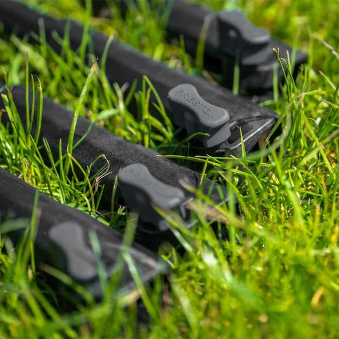 3. **Gebruik op Ongelijk Terrein**: De Preston Roller and Roost Leg Extenders zijn ideaal voor gebruik op hellende oevers of ongelijke grond. Door de extra hoogte en stabiliteit die ze bieden, kun je je hengels precies zo positioneren als je wilt, zonder je zorgen te maken dat je opstelling omvalt.