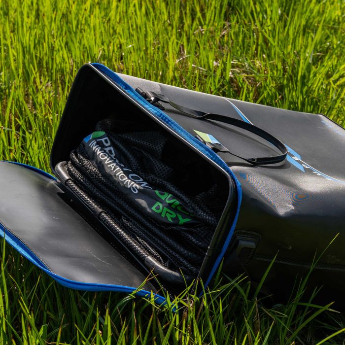 De Preston Supera X EVA Net Tas is ontworpen voor gemakkelijk gebruik. Open de robuuste rits en plaats je leefnetten in de tas. Het ruime interieur biedt voldoende ruimte voor maximaal vier netten, zodat je je uitrusting efficiënt kunt organiseren. Gebruik de stevige draag- of schouderbanden om de tas naar je visplek te dragen.
