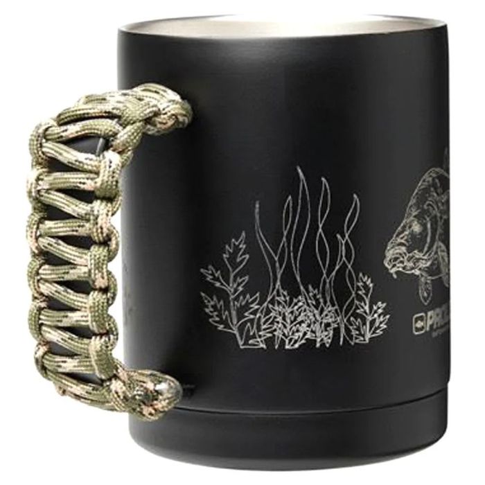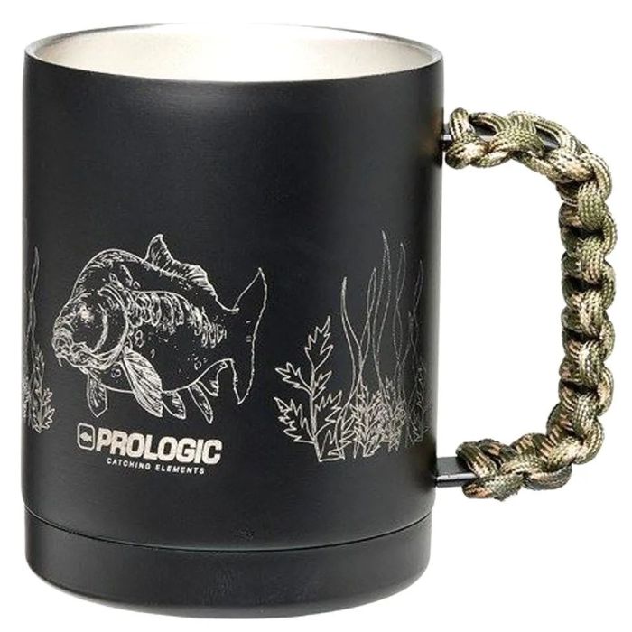 Prologic Blackfire Twin Skin Carp Fishing Cup, Looking for a top-quality carp fishing cup that will retain heat longer and look great doing it? Check out the Prologic Blackfire Twin Skin Carp Fishing Cup. This twin skin stainless steel cup features a Blackfire finish for an ultra-sleek look, plus laser-etched details for added visual appeal. The camo cord wrapped handle provides a comfortable grip, and the cup itself retains heat much longer than other carp fishing cups on the market. So whether you're enjoying a hot cup of coffee or tea on a chilly day out on the water, the Prologic Blackfire Twin Skin Carp Fishing Cup is sure to keep you satisfied.