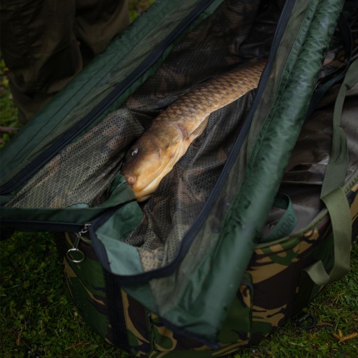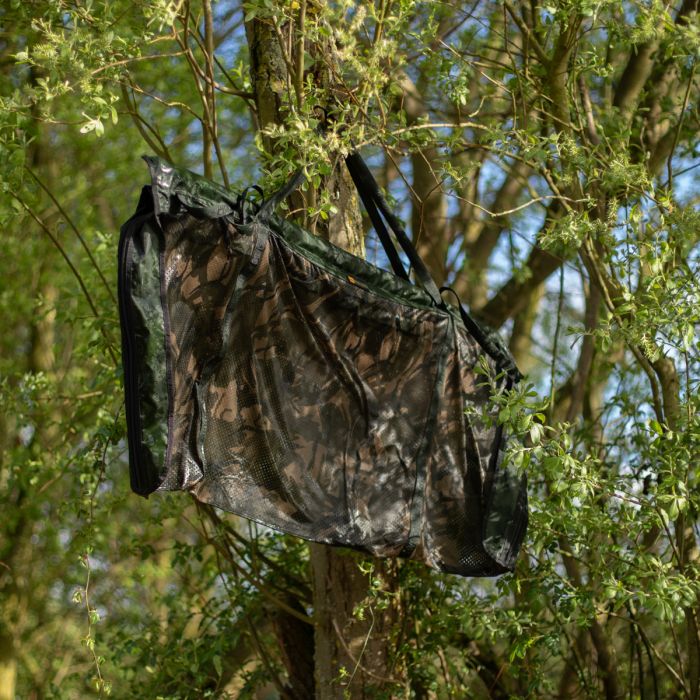 Deze drijvende retentiezak is ideaal om de vis gedurende een korte periode te laten rusten terwijl u de camera en de weegschaal gereedmaakt. Door de houder in het water in de buurt van uw visstek te plaatsen, kan de vis comfortabeler zijn dan uit te drogen op een onthaakmat. Het gaasmateriaal betekent dat water kan doorstromen zodat zachte stromingen de karper kunnen kalmeren. Het ultrazachte camo-gaas is ook geweldig om de karper te beschermen tegen het ongemak van de gebruikelijke stevige weegzakmaterialen, maar laat ook vuil, puin en overtollig water weglopen voor een effectieve weging.