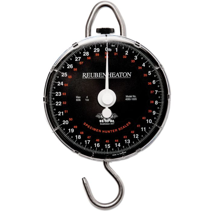 De Specimen Hunter is ontworpen om te voldoen aan de eisen van de moderne specialist. Dit model is standaard voorzien van een zoutwaterbestendig interieur. Alle specimenjagers zijn voorzien van een wijzerplaat met hoge zichtbaarheid en een anti-glare afwerking. Zoals bij alle Reuben Heaton-specialistenweegschalen heeft dit model een groot tarra / nulbereik van maximaal 15% van het bereik en een nauwkeurigheid van meer dan één deel in 500. Een schaal van topklasse die wordt gebruikt door zowel wedstrijd- als exemplaarhengelaars.