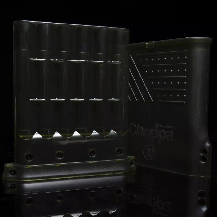 De Choppa pioniert een eenvoudig maar effectief slijtvast tweedelig ontwerp; trek het inzetstuk eruit en vul het met boilies, plaats het inzetstuk terug in de hoofdkamer waar de roestvrijstalen messen veilig zijn ondergebracht, hak de boilies en open eenvoudig de basis van de hoofdkamer en zie hoe uw perfect gehakte boilies in uw aas stromen doos of boilie zakje. Het is echt zo simpel.