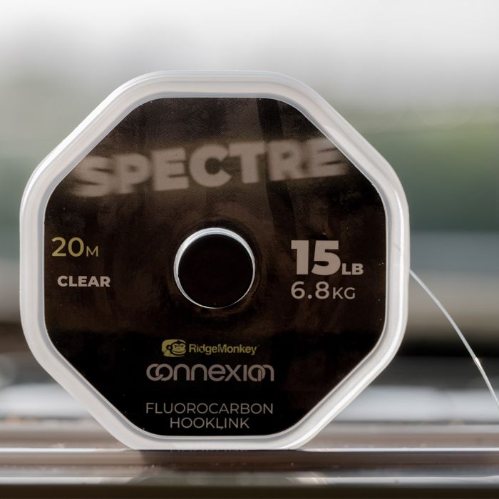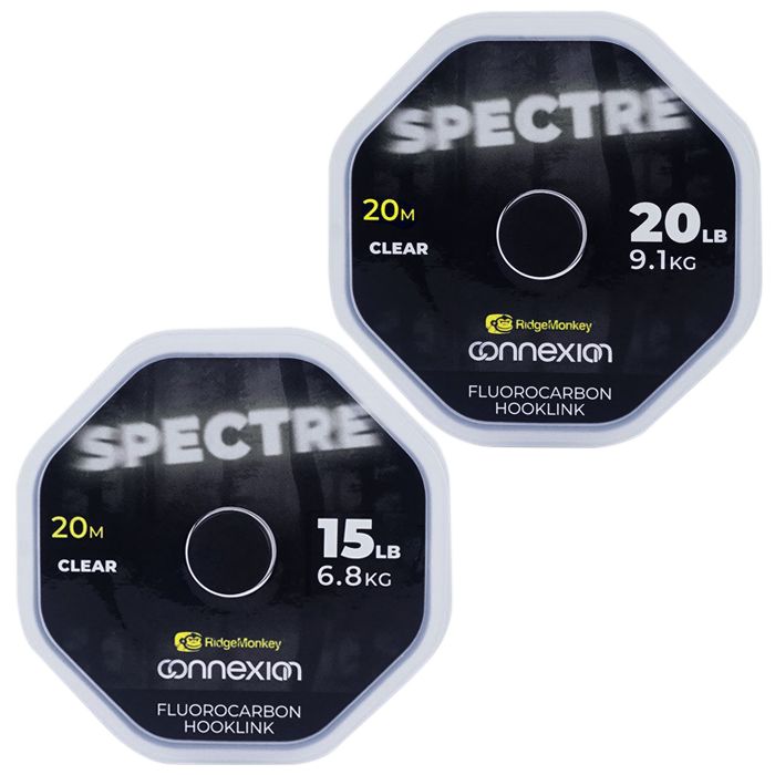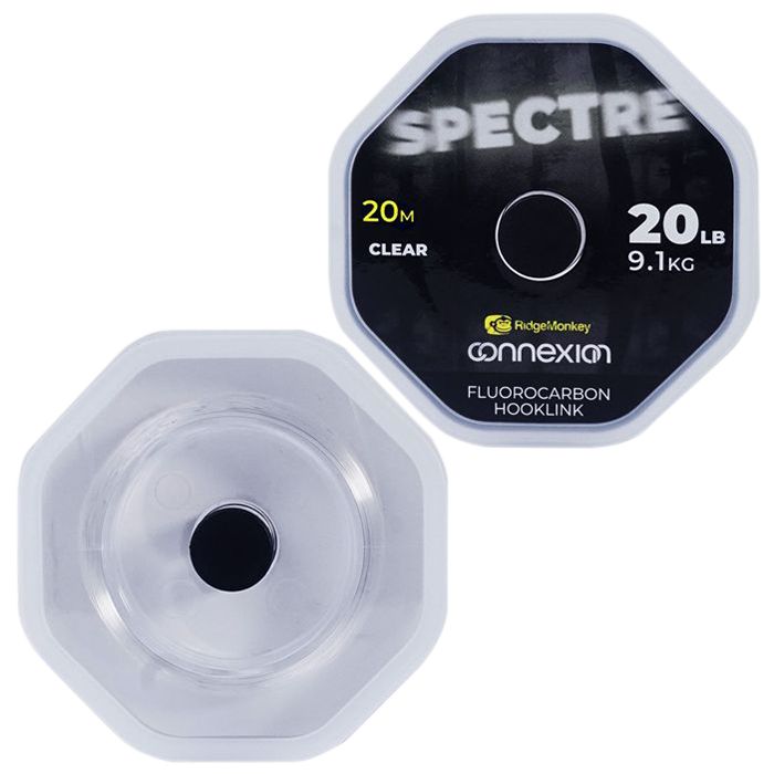 RidgeMonkey's Connexion Spectre Fluorocarbon Onderlijn is een goede keuze voor ervaren vissers. Het wordt geleverd in 5lb/6.8kg en 20lb/9.1kg trekkracht en bevat 20 meter per spoel!