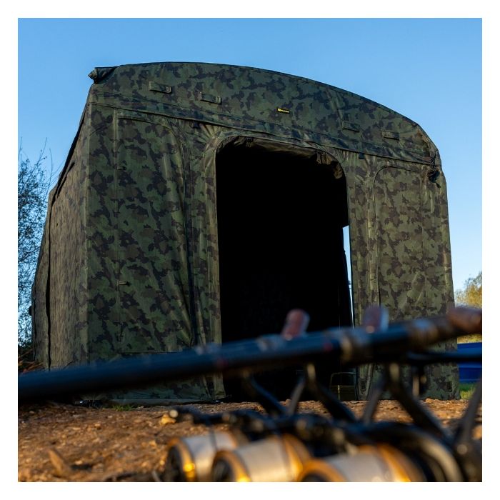 Met dezelfde winddichte, waterdichte en ademende 300D ripstop HydroX skin (verkrijgbaar in een groene of camo uitvoering) als de Bivvies zelf, strekt de XF2 Porch Extension v2 zich uit vanaf de voorste piek om een enorme extra en functionele leefruimte te creëren. Deze multifunctionele uitbreiding biedt uitstekende hoofdruimte, bescherming tegen de elementen en de mogelijkheid om op verschillende manieren te worden geconfigureerd om aan jouw behoeften te voldoen, en kan de schuilplaats transformeren tot de ultieme sociale hub, kooktent of afgelegen werkruimte. De toevoeging van een verwijderbaar vapour shield biedt verbeterde ventilatie en verminderde condensatie, waardoor het de ultieme optie is voor aanpasbare luxe aan de waterkant.