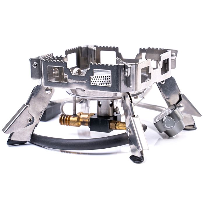 Een gloednieuw supercompacte mini-ontwerp! De Quad Connect Pro Mini Stove Kooktoestel, die is voorzien van RidgeMonkey's zeer geprezen superstabiel vierzijdig ontwerp met een ongelooflijk laag zwaartepunt en vier in hoogte verstelbare opvouwbare poten, levert ongeëvenaarde prestaties, stabiliteit en veelzijdigheid in de meest compacte RidgeMonkey Stove kooktoestel tot nu toe. Met een gloednieuwe gascondensleiding om te zorgen voor een efficiënte brandstofverbranding, zelfs in de koudste omstandigheden, een externe gasaansluiting voor een stabiele opstelling op bijna elk karperterrein en inclusief draagtas, steun voor het toaster handgreep en een gasflesstandaard.