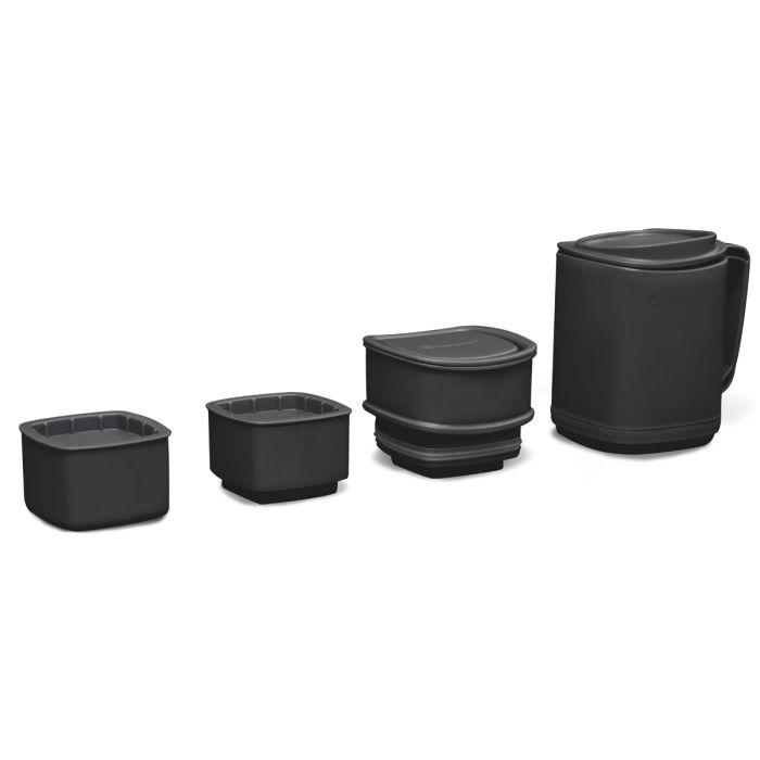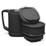 Het is een Thermo Mok, maar niet zoals je hem kent. De originele Thermo Mok is net een stuk beter geworden, want we hebben er een alles-in-een modulaire brouwset van gemaakt. De set bestaat uit drie waterdichte containers, die zijn ontworpen om perfect te passen in de Thermo Mok en essentiële dingen bevatten, zoals je thee, koffie en suiker. Ideaal voor wie ruimte wil besparen en niet de hele keuken mee wil nemen, samen met volle potten koffie, zakken suiker of dozen theezakjes. Verkrijgbaar in Gunmetal Grijs en Gunmetal Groen.
