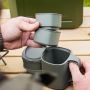 Het is een Thermo Mok, maar niet zoals je hem kent. De originele Thermo Mok is net een stuk beter geworden, want we hebben er een alles-in-een modulaire brouwset van gemaakt. De set bestaat uit drie waterdichte containers, die zijn ontworpen om perfect te passen in de Thermo Mok en essentiële dingen bevatten, zoals je thee, koffie en suiker. Ideaal voor wie ruimte wil besparen en niet de hele keuken mee wil nemen, samen met volle potten koffie, zakken suiker of dozen theezakjes. Verkrijgbaar in Gunmetal Grijs en Gunmetal Groen.