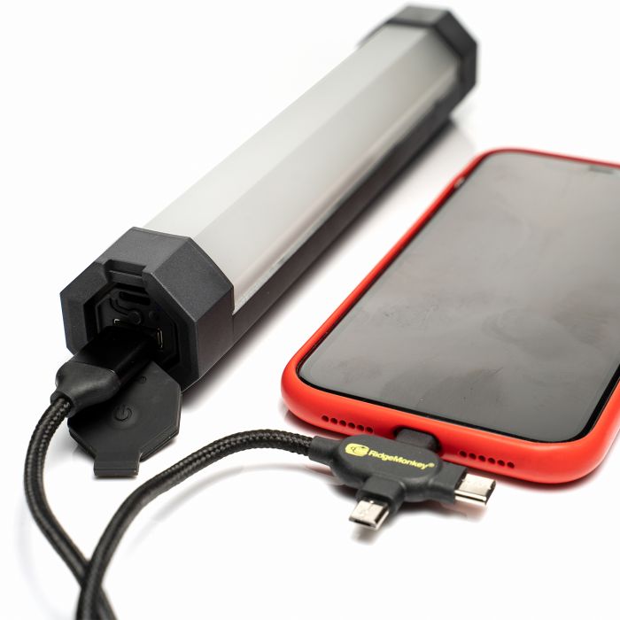 De Vault Lite IR180: RidgeMonkey's meest krachtige en veelzijdige draagbare lichtbron tot nu toe, een combinatie van zaklamp, schijnwerper en powerbank functies in een enkele compacte IP67 waterbestendige behuizing. Met een enorme 5200mAh oplaadbare interne batterij, 180 lumen zaklamp, driekleurige variabele helderheid schijnwerper en 5V 2.1A USB powerbank uitgang, de Vault Lite IR180 houdt je gadgets gevoed en verlicht voor maximaal 240 uur van een enkele lading.