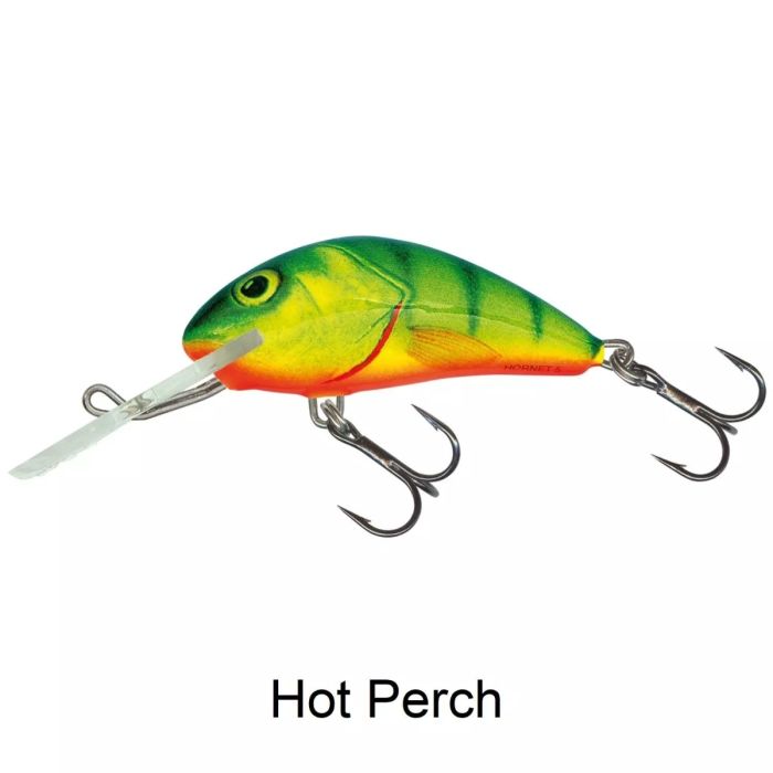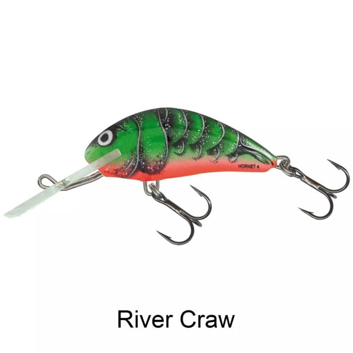 Met een lengte van 4cm is de Hornet effectief voor elke vissoort, onder alle omstandigheden. Door het uitwerpen en ophalen in verschillende presentaties is de Hornet dodelijk effectief met zijn imitatie van hete baars, rivier craw en echte serpeling aasvissen.