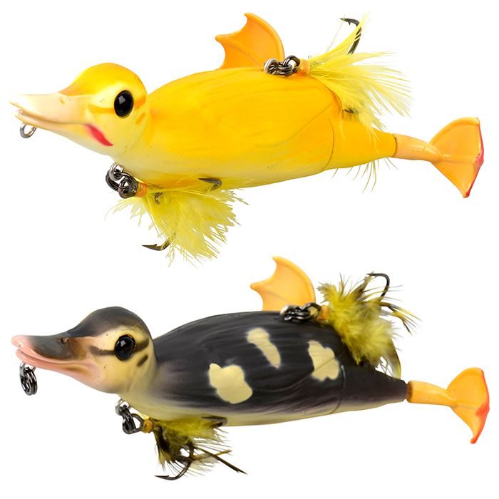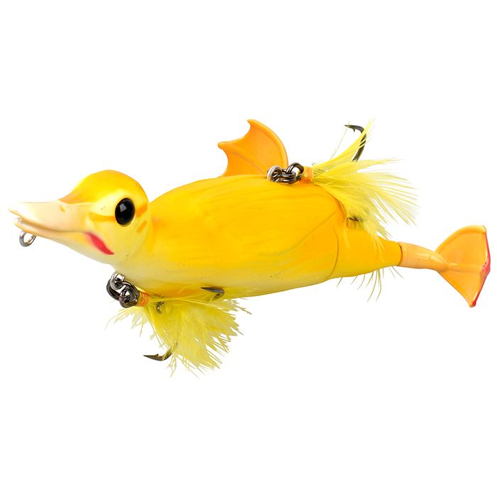De een is ontworpen met een 3D scan van een echte eend waar vervolgens een mal van gemaakt is. De eend heeft twee bevestigingsogen die allebei voor een andere actie in het water zorgen. Wanneer je de eend vastmaakt aan het oog die op de snavel zit, zal ie rustig door het water heen gaan alsof ie rustig aan het zwemmen is. Monteer je de eend aan het oog op de buik dan zal de eend onrustiger en wild zwemmen alsof ie in paniek is. Hierdoor kun je er heel subtiel mee vissen maar ook heel agressief om een aanval uit te kunstaas. Doordat er dreg op de buik er af te halen is, kun je de eend ook perfect door dichtbegroeid water vissen. Dit maakt de eend ook zeer geschikt voor het snoeken in polderwatertjes met beplanting.