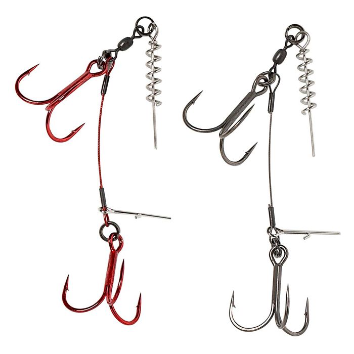 Perfecte Corkscrew stingers voor de populaire spinning met grote shads - sterk Carbon49 gecoat roestvrij staaldraad, ultra scherpe SG Y-dregs. 1 Gunsmoke/BLN en 1 bloedrood per pakje.