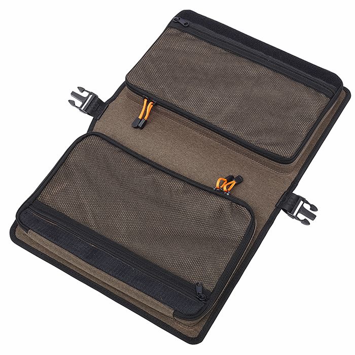Blijf veelzijdig met deze praktische, dubbelzijdige flip tas. Het beschikt over een lokaas aan de ene kant voor kunstaas en jigkoppen en 12 heavy-duty PE-zakken voor accessoires aan de andere kant. Twee zakken aan de zijkant bieden extra ruimte voor accessoires.