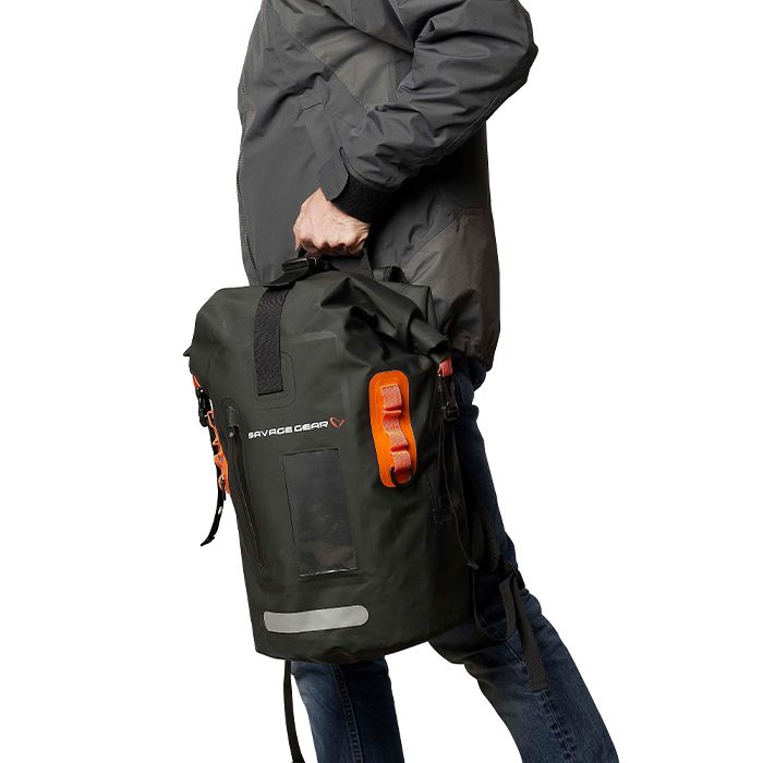 Savage Gear Waterdichte rugzak met gebruiksvriendelijke rol- en kliksluiting. Super handig voor de mobiele vissers, biedt voldoende uitrusting en accessoires voor dagtochten.