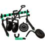 De transportset bevat 1x voorwielen met stuur, 2x achterwielen, 1x verstelbare scheidingsrail met veiligheidspal, 1x scheidingshouder. Geschikt voor 25 of 36 mm ronde poten.