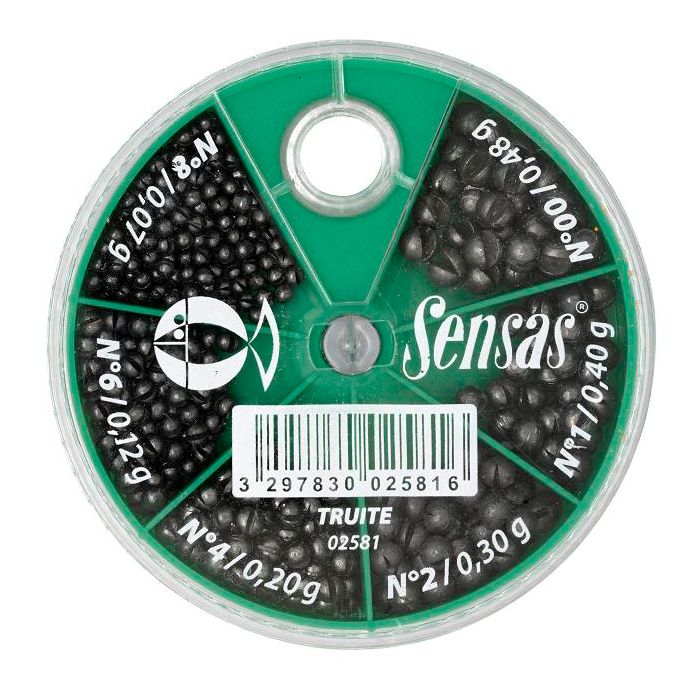 Shotdispenser met de meest gebruikte maten voor het vissen op forel - no.8-no.00