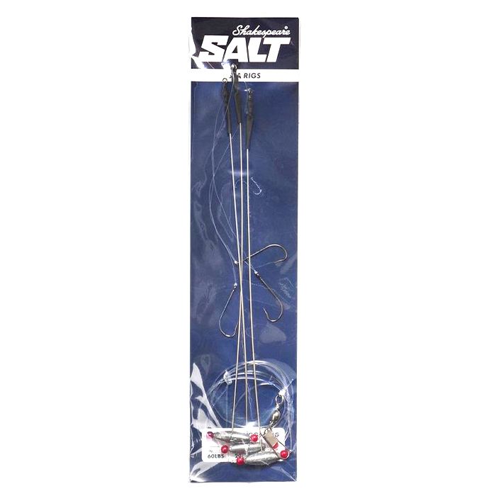 De Shakespeare Bottom Hugger Rigs zijn verzwaard met een lood. Hierdoor kunt je de rig zelfs bij sterke stroming gebruiken. De rig kan voor verschillende toepassingen vanaf het strand worden gebruikt. De onderlijnen zijn met kleine roterende wartels aan de metalen afhouders bevestigd om verdraaiing van de lijn te voorkomen. De korte lengte van de onderlijnen maakt deze rigs extra effectief!