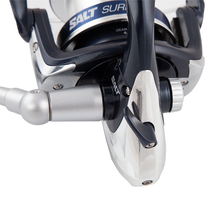 De Shakespeare SALT Surf Long Cast Zeevismolens zijn verkrijgbaar in de twee meest populaire maten en beide zijn uitgerust met een spoel met grote lijncapaciteit en een reserve spoel. Dit stelt je in staat om de afstanden te werpen die je nodig hebt om ver buiten de branding te reiken en vissen te bereiken die voorbij de branding liggen.