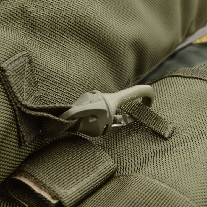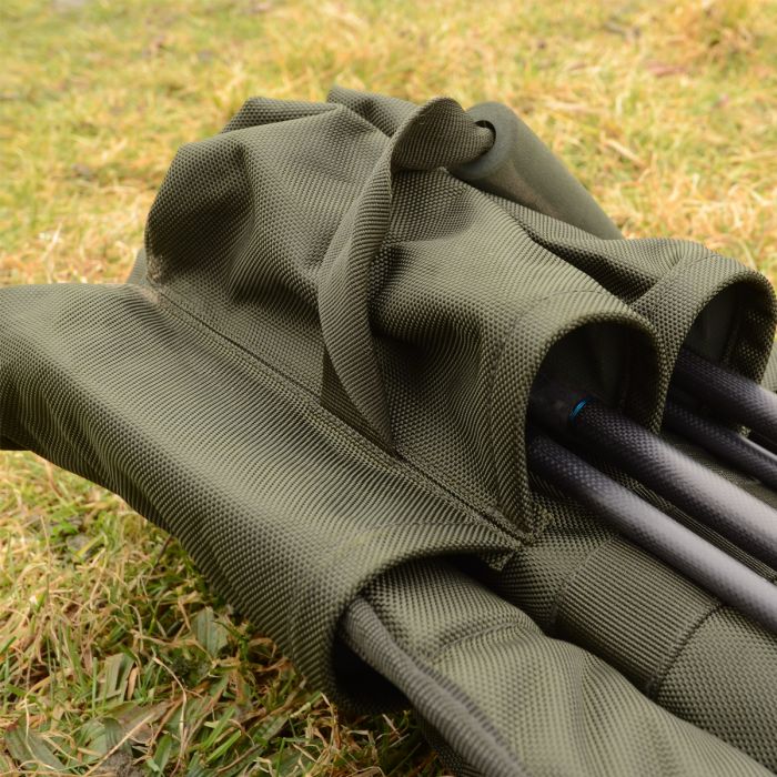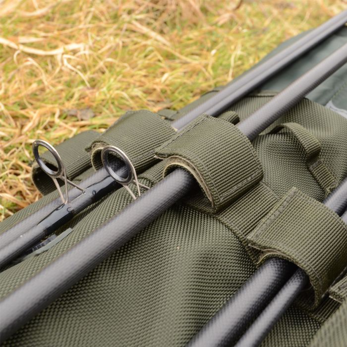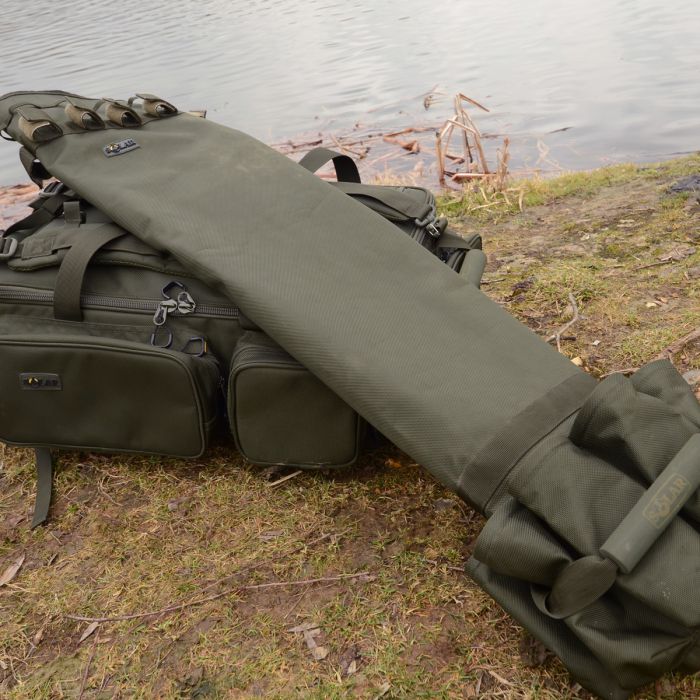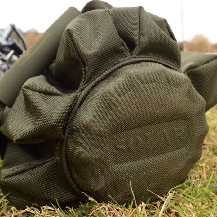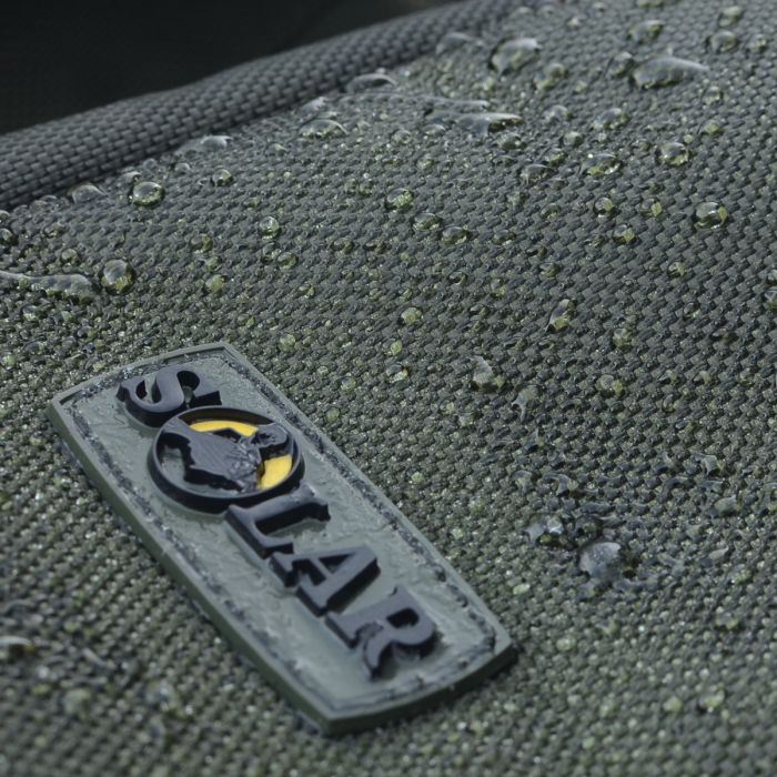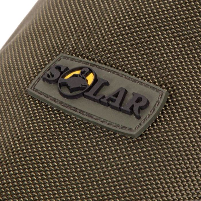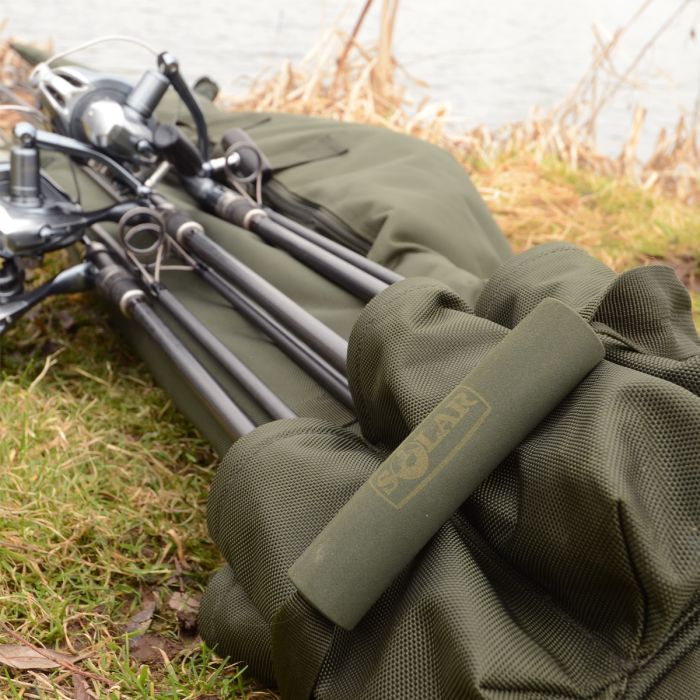 De Solar tas is voorzien van easy-fit zakken en een klittenband sluiting die het mogelijk maakt om naakte hengels, hengels in foedraal mouwen of een combinatie van beide veilig op te bergen. In de middelste zak past een paraplu en een schepnet, zodat de hengels niet tegen de andere spullen aan worden geduwd.