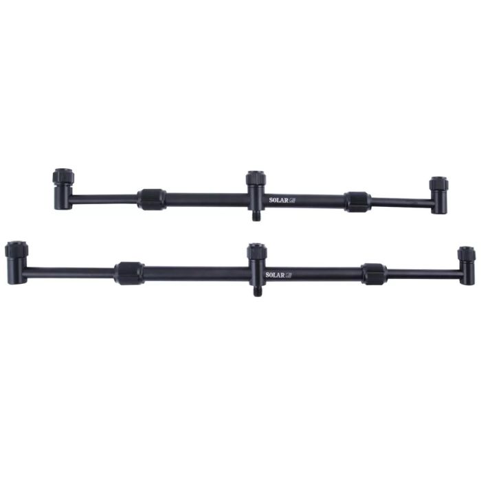 Deze buzz-bars profiteren ook van de pozi-loc-moeren van Solar, die perfect zijn voor het nauwkeurig uitlijnen van de voorste en achterste hengels, geweldig voor beetmelders. De 3 / 8BSF-thread zorgt er ook voor dat ze ook compatibel zijn met alle Solar-banksticks, en vele anderen ook. De balken zijn ook compatibel met de A1 Pod. U moet de voor- en achterbalken afzonderlijk bestellen, omdat deze niet als één product samenkomen. Het verschil is dat de achterstang iets breder is voor een brede tot smalle opstelling.