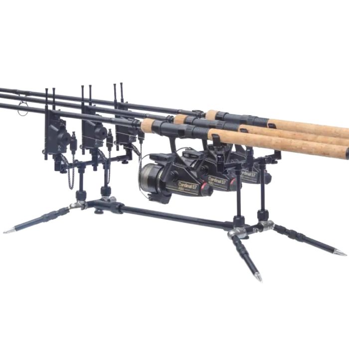 De rod pod biedt plaats aan zowel drie als vier hengels, waardoor je flexibel kunt vissen en verschillende opstellingen kunt gebruiken. Dit is ideaal voor vissers die graag meerdere hengels tegelijkertijd uitgooien.