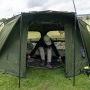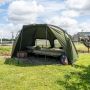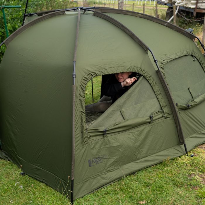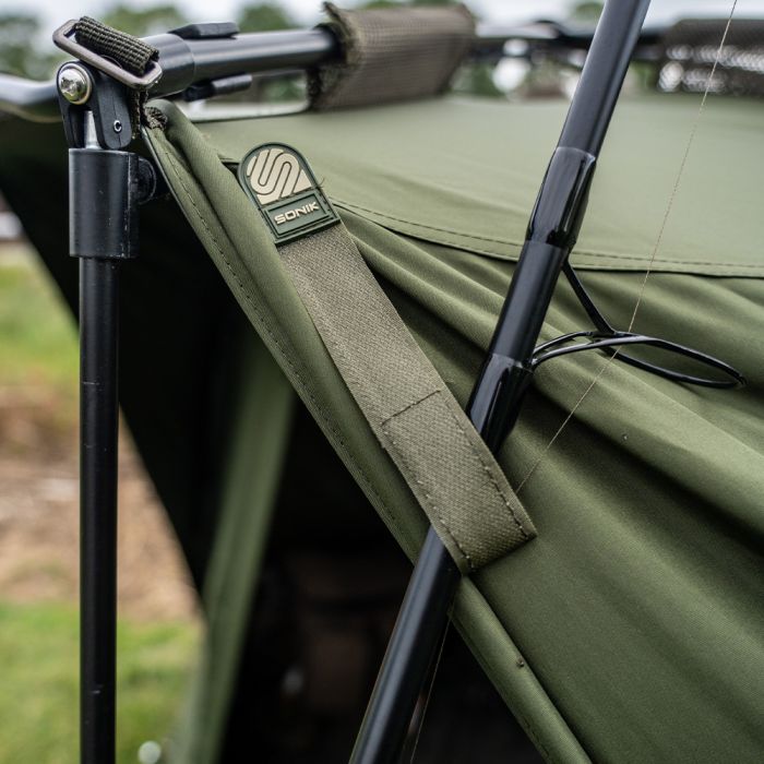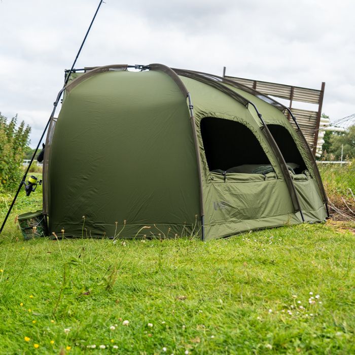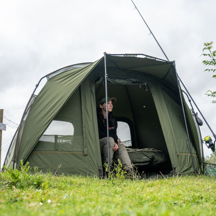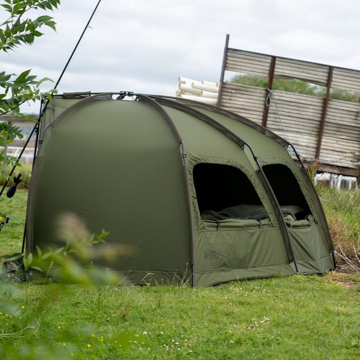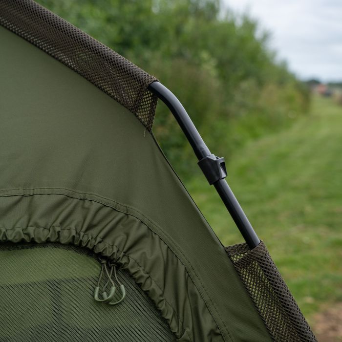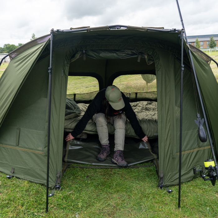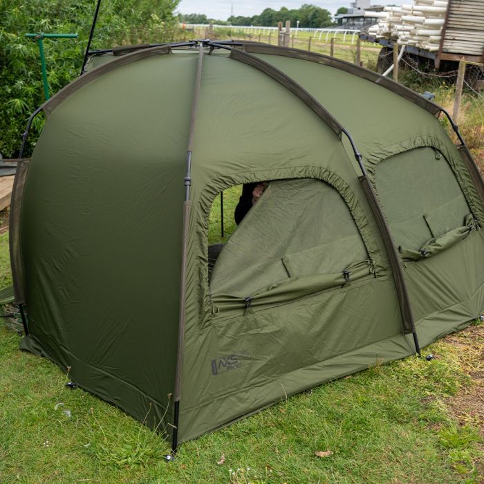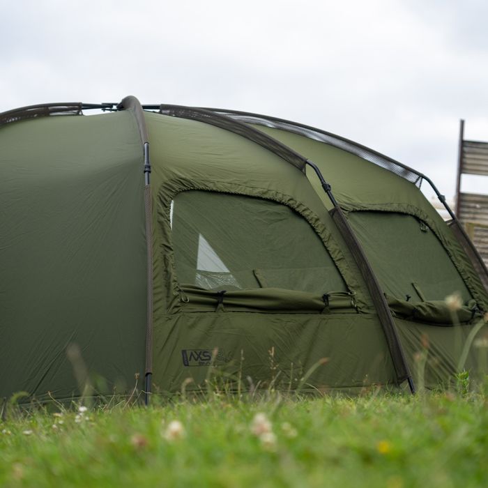 In navolging van het succes van de veelgeprezen AXS Bivvy is de AXS-V2 Bivvy gebouwd rond de supersterke AXS ALLOY centrale naaf en lichtgewicht anti-twist 6061aluminium frame, dat een ultrasnelle en superstabiele setup biedt. De luifel is geüpgraded naar onze nieuwe 16.000 mm HH Cloudbase + ™ -stof die sterk, licht en extreem waterdicht is. Het frame is gevormd met een hoge vlakke achterkant en steile zijkanten om zo maximale interne ruimte te bieden, ideaal voor de langere sessies in het VK of Europa. De extra grote voorpiek met regendruppelbescherming biedt nog meer bescherming en heeft de perfecte maat om uw levelbed en kit te beschermen tegen de elementen. Een grote bonus voor die reizen naar het buitenland is de toevoeging van het 'clip in' of 'zip in' grondzeil dat ook is voorzien van een 'fold back door entry flap', waardoor u de ingang gemakkelijk droog en schoon kunt houden. De bivvy beschikt ook over een zip on / off frontpaneel, compleet met mozzi zijruiten en volledig aanpasbaar voordeursysteem. Andere voordelen zijn de binnenzakken voor en achter en de opties voor groene/heldere deurpanelen, plus driewegopeningen aan de achterkant die vanaf de binnenkant van de bivvy kunnen worden geopend. Integrale Watershed™ ontluchtingsafstandsstangen, een extra grote compressietas, twee 48" snelkoppelingsstormpalen en heavy-duty T-pegs maken het pakket compleet. *AXS-V2 Vapour Cap en AXS-V2 Wrap apart verkrijgbaar.