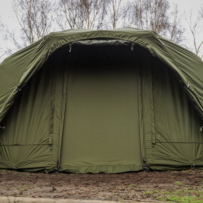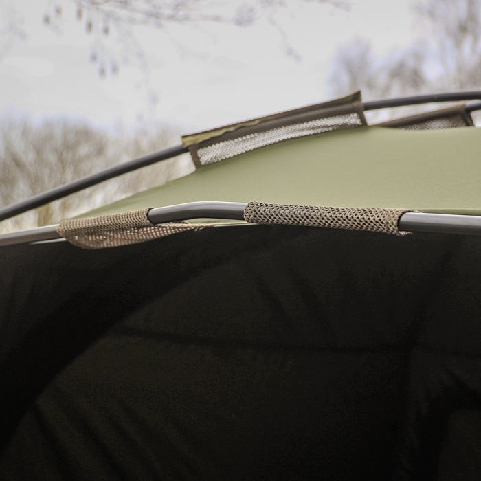• Geavanceerde Dura-mesh™ 3-weg ventilatieopeningen aan de achterkant die van binnenuit de bivvy kunnen worden geopend