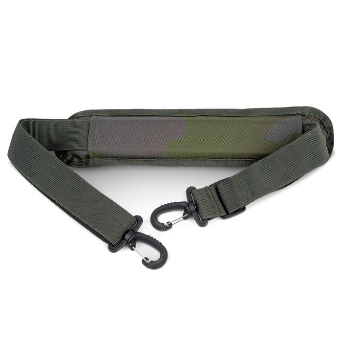 Hoe gebruik je deze schouderriem? Bevestig de stevige clips aan de lussen van je tas, hengelhoes of andere uitrusting. Stel de lengte van de riem af zodat deze comfortabel over je schouder past. Het gevoerde schouderstuk zorgt voor extra ondersteuning, terwijl de duurzame materialen ervoor zorgen dat je lading stevig en veilig blijft tijdens het transport. Wanneer je de riem niet gebruikt, kun je hem compact oprollen en opbergen in je uitrusting zonder dat hij veel ruimte inneemt.
