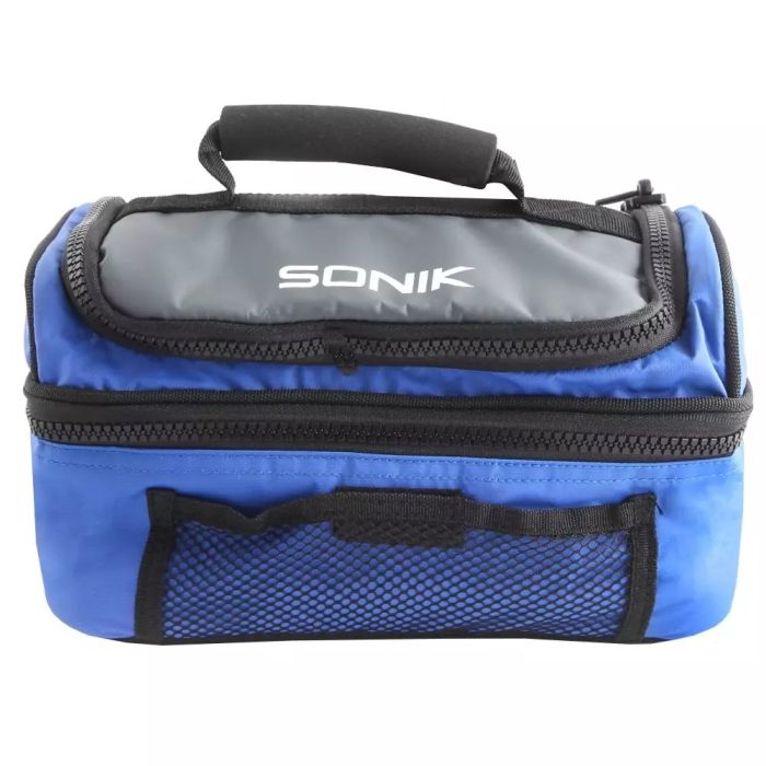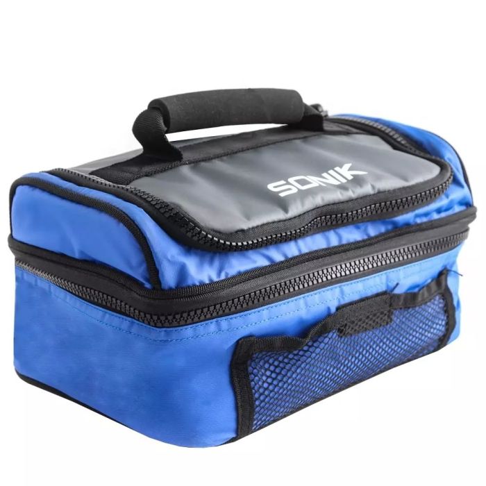 Compacte, volledig geïsoleerde koelbox met 2 secties, bekleed met gemakkelijk te reinigen opgevulde folie. Ontworpen om in het bovenste deel van onze rugzak te passen. Hiermee kun je bevroren en levend aas apart bij je dragen. Gemaakt van zeer slijtvaste en waterdichte PVC-stof met versterkte, stevige basis en handgreep aan de bovenkant.