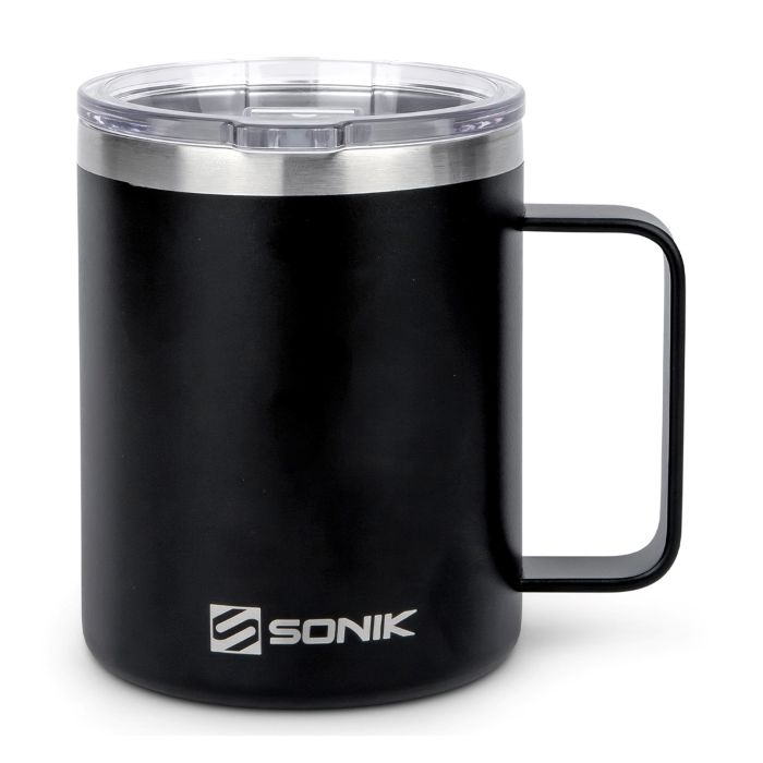 De SONIK Sizzla Thermische Mok is dubbelwandige en gemaakt van RVS. Perfect om je drankjes warm te houden en ideaal voor zowel kampeertrips als het woon-werkverkeer 's ochtends. Het BPA-vrije deksel heeft een dubbele rubberen afdichting, een gemakkelijk te openen lipje en een schuifopening.