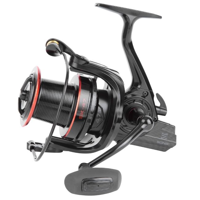 De SK-47 Carbon 10000 is een nieuw soort hybride karper molen die aanzienlijke werpprestaties combineert in een lichtgewicht pakket. Het strakke uiterlijk en de zeer sterke carbon body en rotorconstructie van de molen, stralen kwaliteit uit. De aluminium spoel met lange slag maakt werpen op afstand een gemakkelijke taak. Uitgerust met een superglad wormas oscillatiesysteem om nylon of gevlochten lijn perfect op te spoelen, zodat de lijn elke keer weer perfect ligt. Bovendien bevat de multi-washer micro verstelbare slip onze 'Quick Torque Drag' systeem en zijn snelle aanpassingen soepel en gemakkelijk te maken tijdens het drillen van grote vissen. Extra functies zijn onder meer een zwevende rotorlijnbeschermer, dubbele veerbelaste lijnclips en een extra grote kink vrije lijnrol. Dit is een ideale molen voor moeiteloos werpen over lange afstanden.