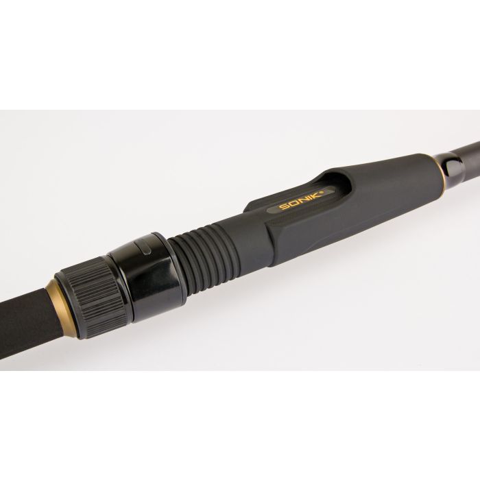 Keuze uit 30 mm, 40 mm of 50 mm butt-ringen Nieuwste generatie multi-modulus, low resin carbon blanks Progressieve actie met extra kracht in de eind Vergevende tip voor het spelen van vis Dubbelbeen SiC-geleiders voor extra prestaties, sterkte en duurzaamheid Aangepaste Sonik 18 mm DPS reelhouder - geschikt voor alle big pit molens Gunmetal concave voorste en achterste kragen 'Lijnvriendelijke' aangepaste Sonik-lijnclip Volledige, voorgevormde Japanse krimpfoliehandgreep