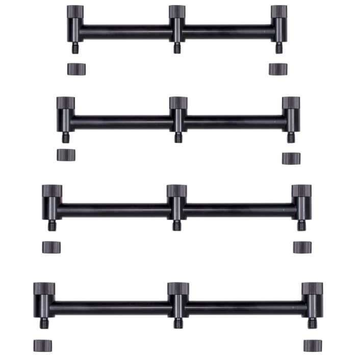 Er zijn twee modellen Stanz Buzz Bars, een versie met drie hengels en een met twee hengels, met in elk model twee variaties op de breedte. Zowel de twee-hengerl als de drie-hengel STANZ BUZZ BARS zijn gemaakt van een stevige, sterke 16/20mm, licht, hoogwaardig aluminium en hebben een superieure kwaliteit zwart geanodiseerde afwerking. Het ontwerp op beide modellen bevat doelpaal converter schroefdraden aan de onderzijde en vergrendeling kragen voor de uitlijning van alarmen en eindsteunen. Ze kunnen ook worden gebruikt met een enkele oeverstok of in combinatie met STANZ SPLIT STOKKEN om een dubbele of drievoudige, enkele basis bar set-up te bereiken! U kunt ook de schroefdeksels van de doelpaalconvertor verwijderen en ze gebruiken als een doelpaalconfiguratie of als een enkele stokconfiguratie wanneer u de centrale schroefmontage gebruikt.