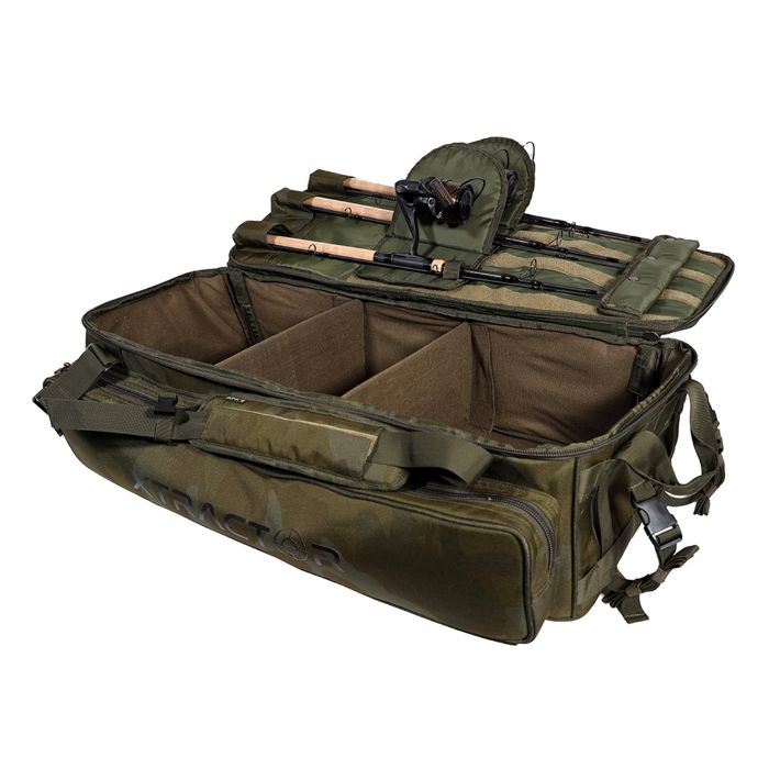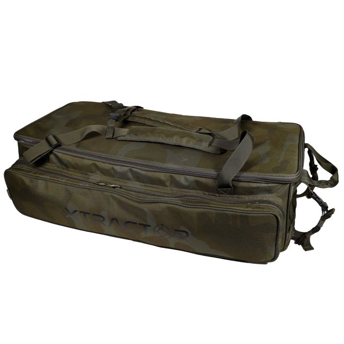 The Xtractor 3-Rod T30 Transport System is a well thought out piece of kit and offers storage and security for up to three 8ft or 6ft Xtractor rods and reels. The clever design offers plenty of storage for additional items like terminal tackle, bite alarms, personal kit and has a landing net pocket at the front. Carry as a rucksack or transport it to your swim on a barrow.
