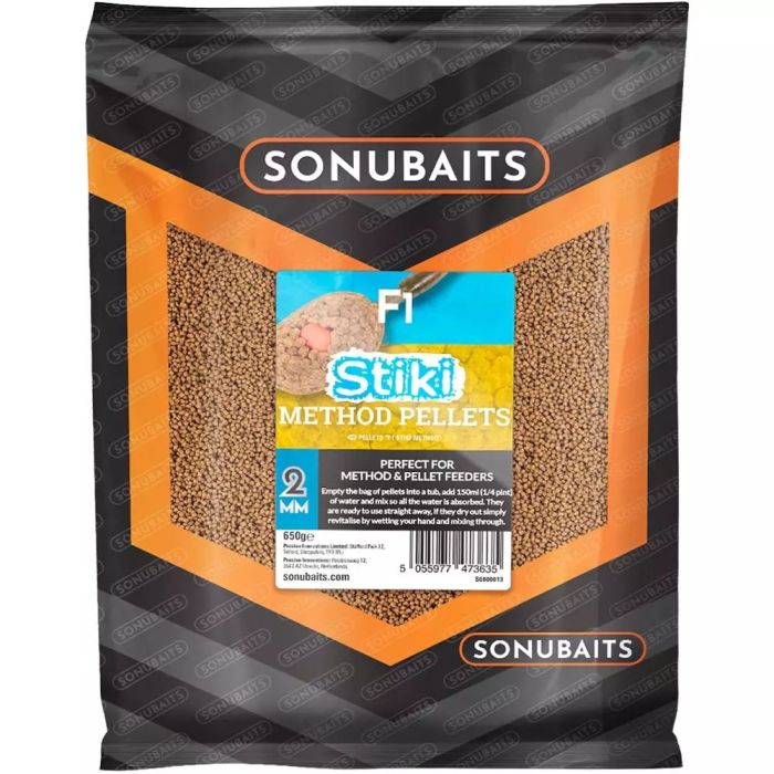 De Sonukaits F1 Stiki Method Pellets zijn verkrijgbaar in 2 maten, 2 mm of 4 mm. Voeg gewoon 150 ml water toe om te bereiden. Perfect voor de methode of pellet feeder. Geleverd in een zak van 650 g.