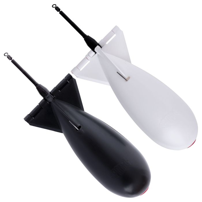 Verkrijgbaar in zwart en wit. Geen aasverlies Zodra de Spomb geladen is, zal er, omdat de container gesloten is, geen aas uit komen totdat deze in contact komt met het water en open gaat. Spods met een open einde of met gaten laten het aas eruit vallen. Elk aas dat in de Spomb past kan worden uitgeworpen, inclusief: - pellets, boilies, hennep, maïs, mixer, brood, vlees, maden, wormen en partikels enz. Geen noodzaak om te mixen Alle aassoorten kunnen gewoon in de Spomb geladen worden zonder enige noodzaak om te mixen. Als u echter bolletjes grondaas wilt mengen, kunnen deze nauwkeurig worden geworpen tot een bepaalde afstand, zelfs op zeer grote afstand.