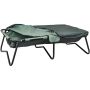 Grote gevoerde karperbak. Het heeft een solide en duurzaam frame, waardoor het zeer stabiel is. Het is perfect opgevuld met twee gaasgaten voor waterafvoer. Velcro hoes is ook inbegrepen. Dit dient om de vis te kalmeren wanneer deze op de mat wordt achtergelaten en voorkomt dat de vis uit de bak glijdt. De pad is licht, makkelijk op te vouwen en makkelijk mee te nemen. Een transporttas wordt meegeleverd. Afmetingen lxbxh 100x67x31 cm, gewicht 3,8 kg.