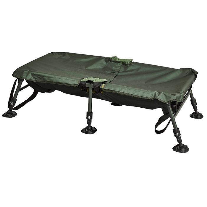 De wiegvormige pad zorgt voor een volledig veilige en zachte behandeling van de vis. Het is gemaakt van een lichte maar zeer sterke aluminium constructie en een zeer duurzaam en perfect gestoffeerd materiaal. Geavanceerde deksels aan beide zijden van de mat zorgen ervoor dat de bak snel kan sluiten en helpen tegelijkertijd de vis te kalmeren door zijn kop te bedekken. Aan beide uiteinden van de onderkant van het kussen bevinden zich solide rubberen gaasgaten voor waterafvoer. Dankzij de 6 in hoogte verstelbare poten kan de pad ideaal worden aangepast aan elk terrein voor perfecte stabiliteit. De pad kan worden opgevouwen voor handiger en compacter transport. Hoogte: 37-49 cm / Lengte: 120 cm / Breedte: 73 cm / Gewicht 5,8 kg