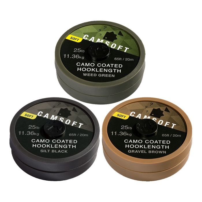 Onze populaire camouflage gecoate onderlijn heeft een nieuwe naam! We zullen twee versies herintroduceren, namelijk Camsoft (de originele onderlijn) en Camstiff (de nieuwe stijvere versie.) Een spoel van camouflage gecoate onderlijn. Gespoten secties breken de lijn van het tuigage over grind, zand en slibbodems. Gemakkelijk te strippen, stoomt perfect recht en is verkrijgbaar in drie kleurstellingen die passen bij elk type meerbedding. Camsofts coating heeft een hogere sterkte dan de meeste andere gecoate vlechten, met name op de knoop, waar het breken van de coating de anti-knoop eigenschappen van de afgewerkte gebonden tuigage ernstig in gevaar kan brengen. De coating heeft ook een dunnere diameter in vergelijking met andere gecoate lijnen Camsoft heeft duidelijke voordelen voor de presentatie en het verbergen, evenals de mogelijkheid om op een natuurlijke manier te zinken. De vlecht is gemaakt van echte Dyneema, net als onze beproefde Tungskin. Verkrijgbaar in 20m spoelen in 18lb en 25lb in Weed Groen, Gravel Bruin en Silt Zwart. De gecoate buitenkant is gemakkelijk te strippen, waardoor een soepele gevlochten kern zichtbaar wordt.