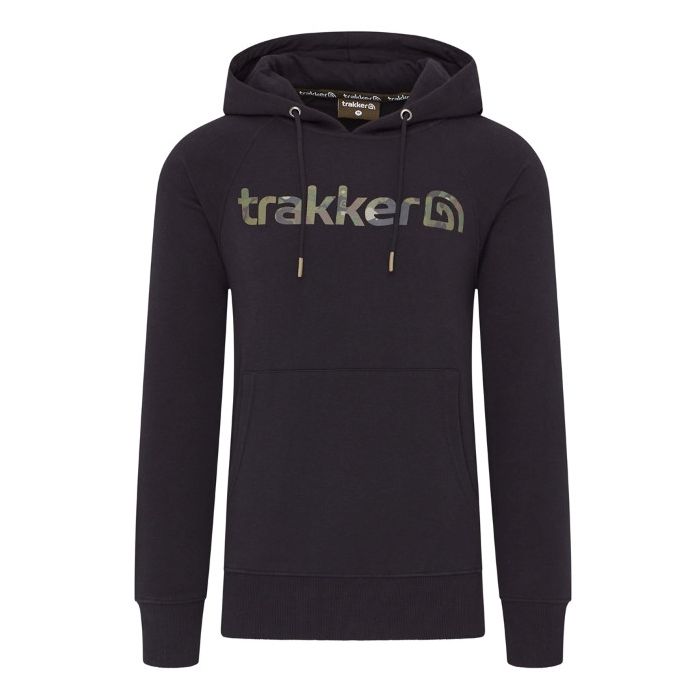 Trakker CR Camo Logo Black Hoodie, The CR collection comprises of comfortable carp fishing hoodies, T-shirts and joggers in classic khaki green or alternative black, with stylish branding details to keep you looking your best on the bank.