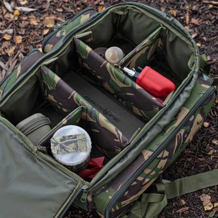 De Trakker DPM 50 Ltr Rugzak heeft een indrukwekkende capaciteit, zowel intern als extern. Het met een trekkoord beveiligde hoofdcompartiment is in vierën gedeeld door afneembare, verstelbare klittenbandverdelers, waardoor je jouw uitrusting efficiënter kunt beheren. Er zijn vijf externe gewatteerde zakken met rits om extra spullen bij de hand te houden.
