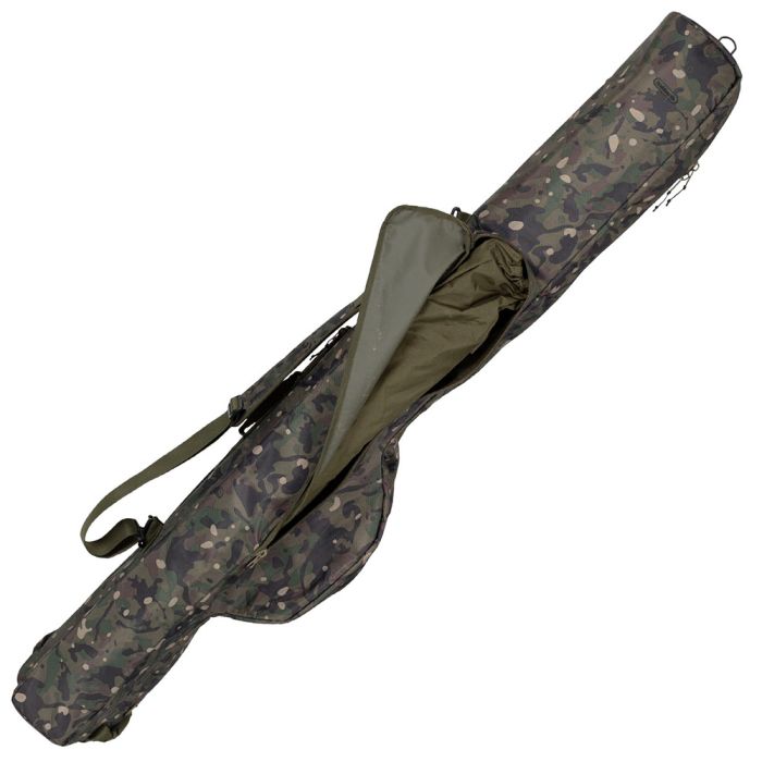 Een van de unieke kenmerken van de Trakker NXC Camo 3 Rod Sleeve is het verbrede gedeelte aan de topsecties en interne padding, waardoor hengels met 50mm K-serie geleiders gemakkelijk kunnen worden ondergebracht. Dit zorgt voor extra bescherming van je geleiders, wat vooral belangrijk is bij het vervoeren van je hengels over ruig terrein.