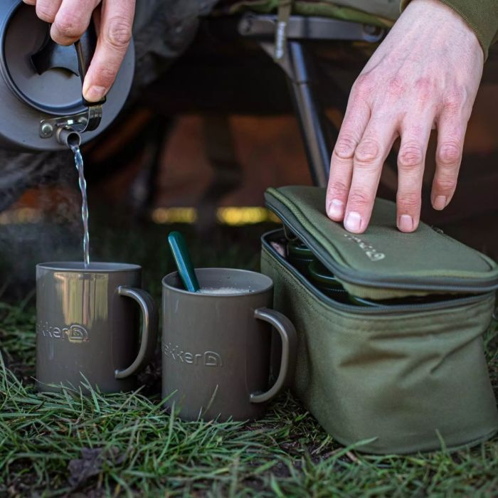 Subtiel stijlvol, in een compact, onopvallend ontwerp, deze Trakker-brouwzak wordt geleverd met een theelepel, twee plastic bekers en drie kleine plastic bakjes, perfect voor het houden van theezakjes, koffie en melk, genoeg om je een dagje mee bezig te houden op de oever. Een opwarmend brouwsel kan je de energie geven om door te gaan als je onderdrukt bent, en is een snelle en gemakkelijke manier om die vangst van je leven te vieren.
