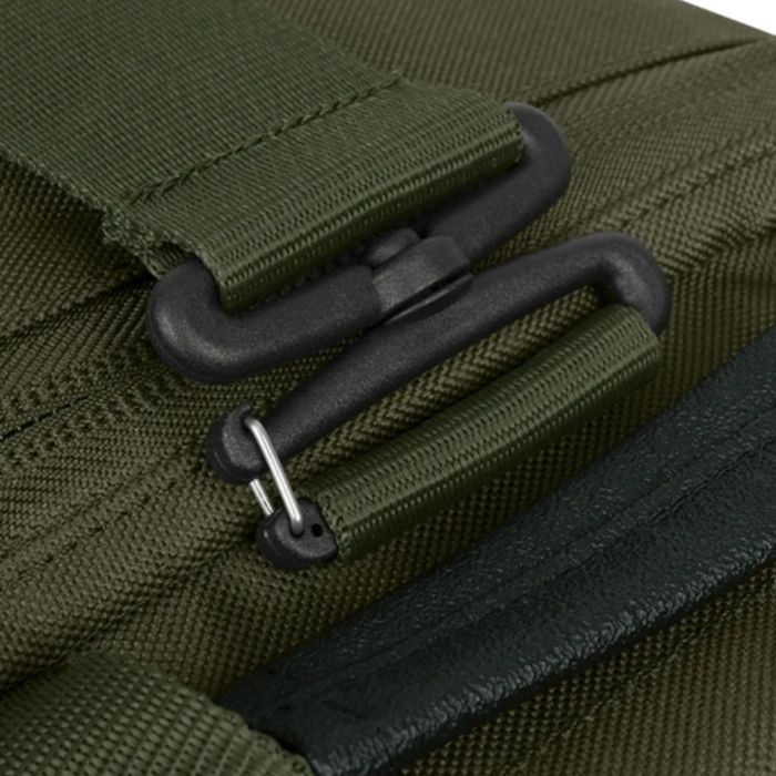 De tas is gemaakt van duurzaam n-dura materiaal, heeft een waterdichte onderkant met rubberen voetjes en is gemakkelijk te vervoeren met de afneembare gevoerde schouderriem, draaggrepen en handgrepen aan beide zijden om de tas in te laden.