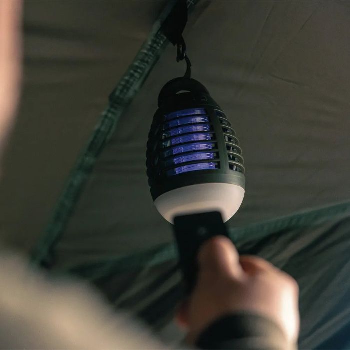 Deze multifunctionele remote bug blaster kan worden gebruikt om muggen uit je shelter te verdrijven. Als alternatief kun je het gebruiken om je shelter of stek te verlichten met de 180-lumen schijnwerper. Beide functies kunnen onafhankelijk of gelijktijdig worden gebruikt en kunnen worden geactiveerd op de hoofdunit of op afstand met behulp van de meegeleverde afstandsbediening.
