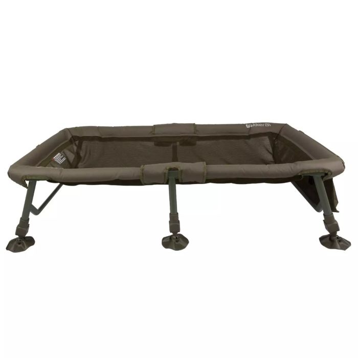 Er zijn zes in hoogte verstelbare opties op de poten om een comfortabel niveau voor de visser te garanderen, maar ook het juiste niveau voor de vis. Zwaardere vissen zorgen ervoor dat het materiaal van de mat de grond raakt en dus helpt het versterken van het frame de vis meer te beschermen. Er zijn ook draaibare modderpootjes op de poten van het frame om de mat waterpas te houden op ongelijk oeverterrein.