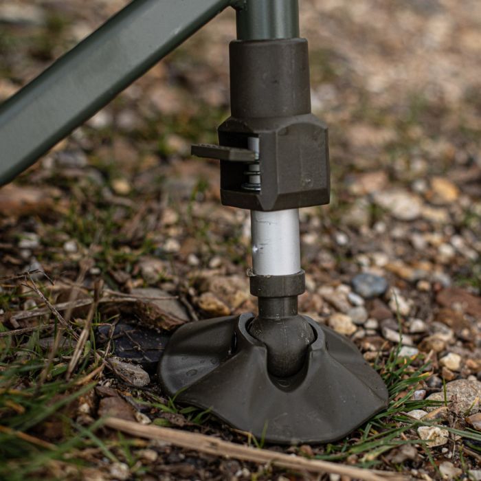 Er zijn zes in hoogte verstelbare opties op de poten om een comfortabele waterpas te garanderen, niet alleen voor de visser, maar ook voor de vissen. Zwaardere vissen zorgen ervoor dat het materiaal van de mat de grond raakt en dus zal het versterken van het frame de vis meer beschermen. Er zijn ook draaibare modderpootjes op de poten van het frame om de mat waterpas te houden op oneffenheden in het oevergebied.