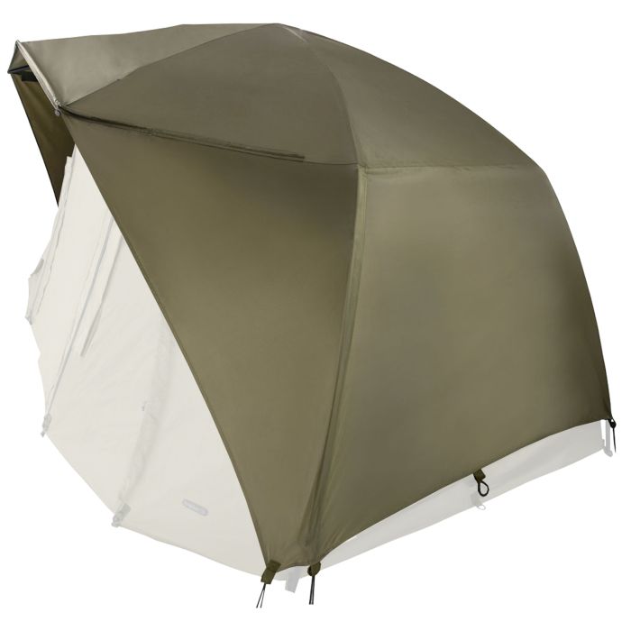 De verlengde zij- en achterkanten bieden volledige dekking van boven naar beneden met een dubbele laag. De Tempest Paraplu 100 Luifel Cap Overtrek kan binnen enkele seconden eenvoudig worden gemonteerd via een insteek-systeem in de drie voorste baleinen. Hij wordt eenvoudig vastgemaakt rond de bivak en de ventilatieopeningen aan de achterkant laten lucht door de schuilplaats stromen bij warmer weer, dus de Luifel Cap Overtrek zorgt er ook voor dat het koeler blijft in de bivak.