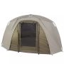 Het voorpaneel bevat volledige ritsen voor eenvoudige bevestiging aan uw 100T Paraplu en biedt een korte sessie een direct opgewaardeerde paraplu. Het paneel heeft dubbele deuren met rits die geopend en vastgezet kunnen worden wanneer je je bagage draagt en je gemakkelijk in of uit de schuilplaats wilt gaan. De deuren maken het ook mogelijk voor een brievenbusopening, zodat u op uw visstoel kunt zitten en de meeste tocht buiten kunt houden, maar toch zicht hebt op uw hengels.