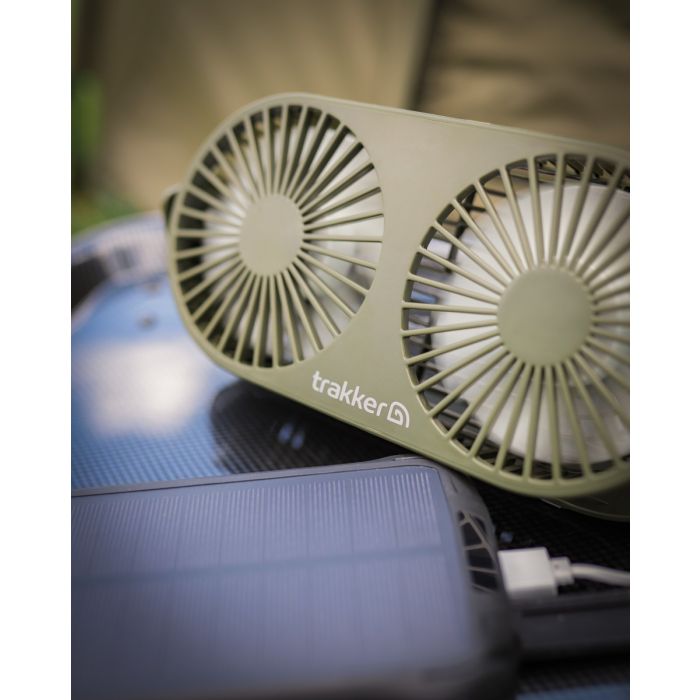 De Trakker USB Bivak Fan is een krachtige dubbele ventilator die lucht circuleert rond uw schuilplaats en u helpt koel te blijven in warme omstandigheden. De bivak ventilator kan ook helpen om condensatie te verminderen wanneer de temperatuur buiten daalt, zodat de warme lucht die u uitstraalt in uw schuilplaats geen gecondenseerde vloeistof veroorzaakt en niet leidt tot schimmel. Het betekent ook dat uw bivvy ramen niet zullen worden beneveld, zodat u een oogje op die hengels kunt houden.