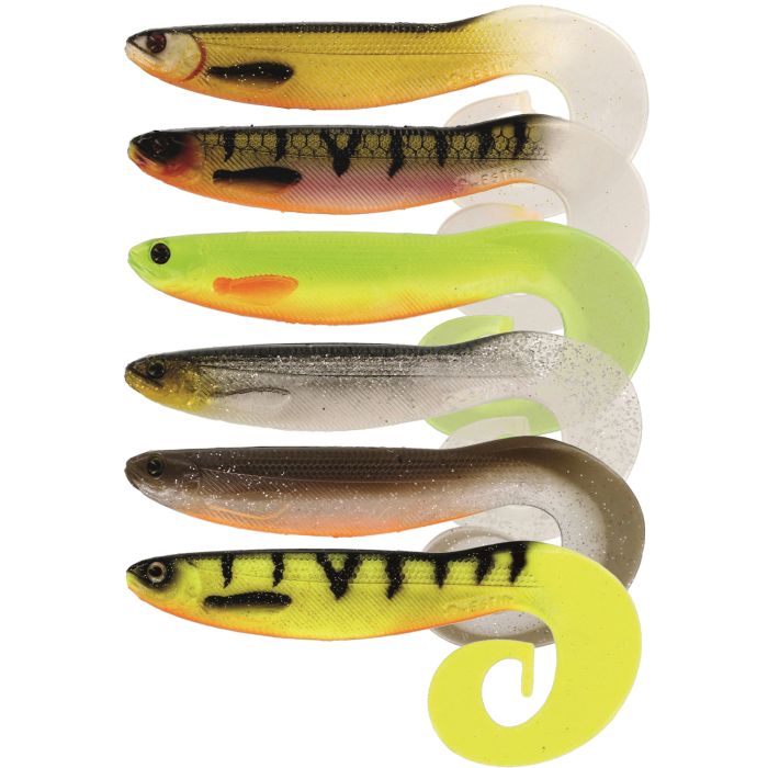 Een krulstaart op een zacht kunstaas is niets nieuws, toch? Niet dus! We hebben alles uit de kast gehaald om dit CurlTeez kunstaas te maken, een kunstaas dat je altijd in je visgerei koffer wilt hebben. Het slanke lichaamsprofiel bootst perfect een aasvis na en de staart komt tot leven bij de langzaamste terughaal die je je kunt voorstellen, of bij een snelle windrug wanneer je probeert om veel grond te bestrijken. De staart van dit kunstaas ziet er niet alleen uit als een buffet voor hongerige roofvissen, maar heeft nog een andere slimme eigenschap - hij is zo gedraaid dat hij naar beneden wijst, zodat hij, wanneer hij dicht bij de bodem komt, grind, slib en een heleboel lawaai maakt. Elke vis die nog niet wist dat het eten op tafel stond, zal het binnen enkele seconden weten! CurlTeez kan met een gewone jigkop worden geregen, of aan een dropshot tuigage, en Texas of Carolina stijl, vanwege de gleuven in de rug en buik. Wat je ook kiest, wees klaar om een grote vis te vangen.
